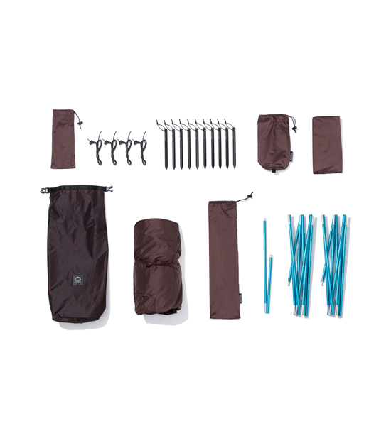 構成:フライ、インナーテント、ポールセット、ペグ×10、ガイライン×4、フットプリント