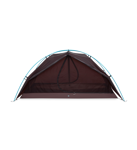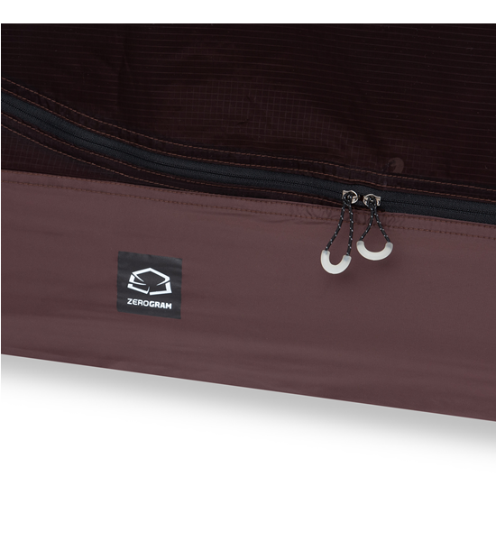 ZEROGRAMのシグニチャテントでもあるEl Chaltenは、フライとインナー、フットプリントを連結して一度に設営できる一体型構造を、初めて実現した軽量ダブルウオールテント。テントの設営撤収が非常に簡単で、稜線使いや悪天候下でも安心してご利用いただけます。長辺の前後2か所にある大きな入口と前室は、実際のフロアサイズ以上に解放感と機動力のある居住空間を実現します。インナーテント壁面全面とベンチレーションの素材には、通気性を保ちながら結露がほとんど発生しないモノフィラメントが使用されています。