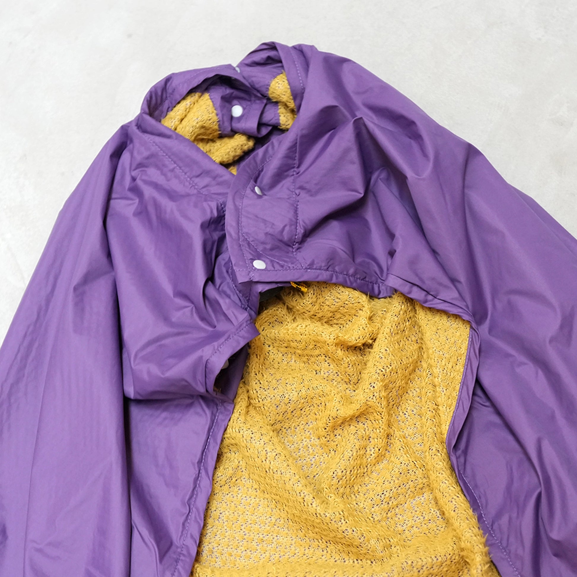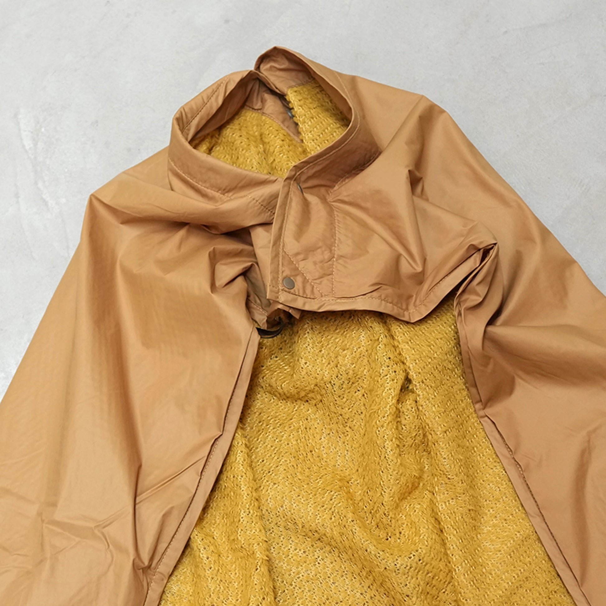 ループが2カ所あるので日除けの様に引っ掛けたり着替えの目隠しに使ったりちょっとしたことにも使えます。ウールやダウン、フリースの大判ストールはあるけれどこれだけコンパクトになって暖かく、140gとフリース一枚より圧倒的に軽いのでザックに入れても気になりません。