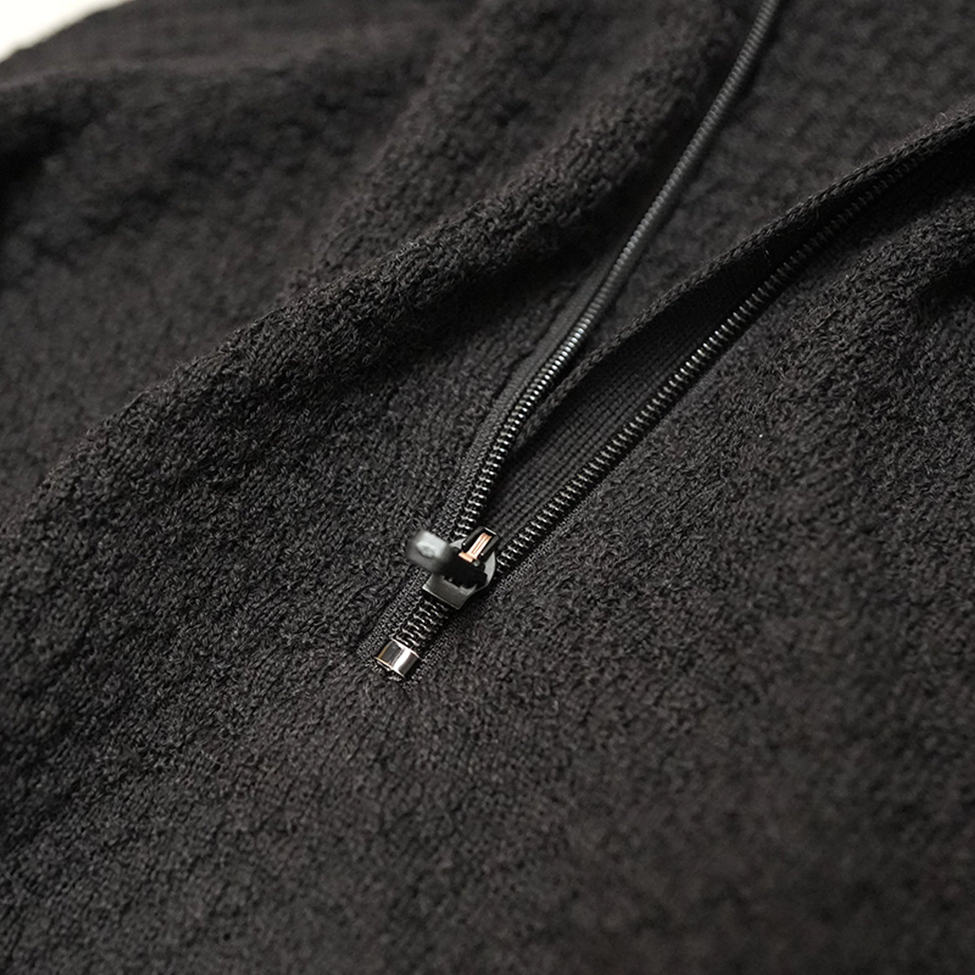 WUNDERWEAR シームレスハーフジップフーディーには、どこにも縫い目が存在しません。そのため素肌に縫い目が当たることがないので、レイヤードしてもゴロつきにくく、ストレスフリーに着ていただけます。