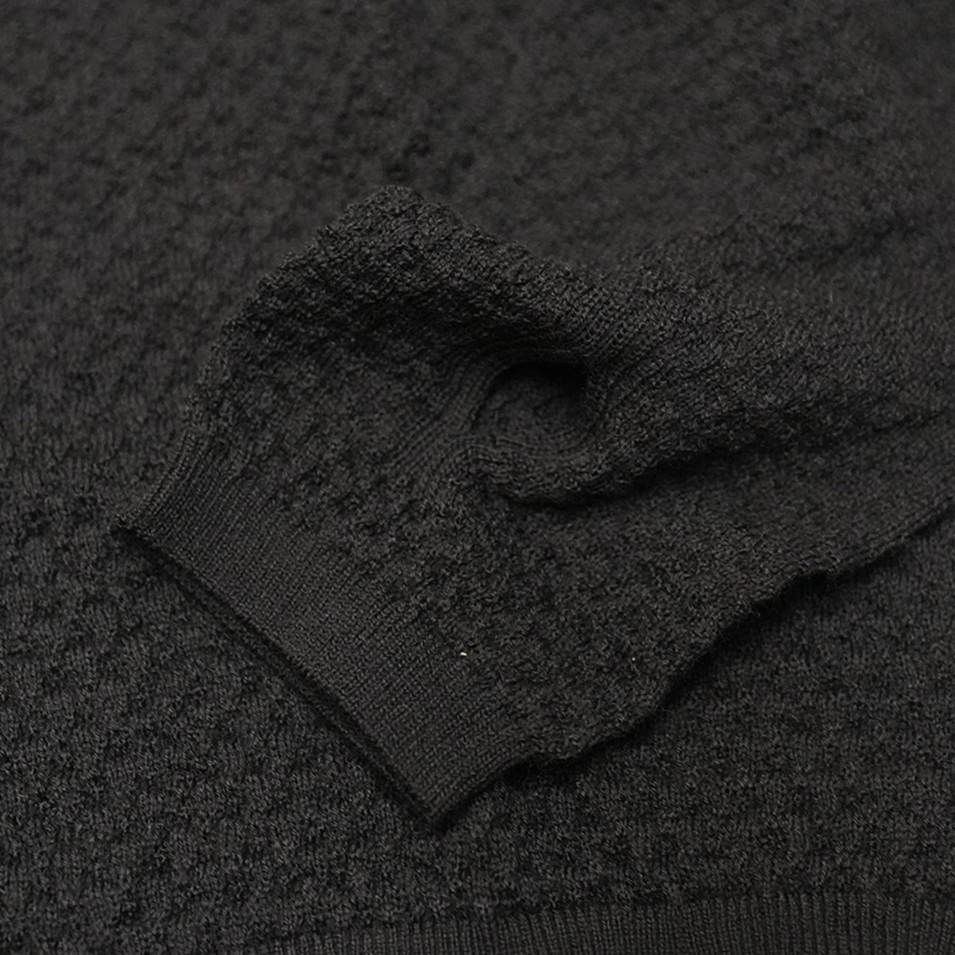 一体成形のWhole Garment / ホールガーメント製法でつくらているので、抜群のストレッチ性があり、着ている時のつっぱり感がなくストレスなく行動できます。