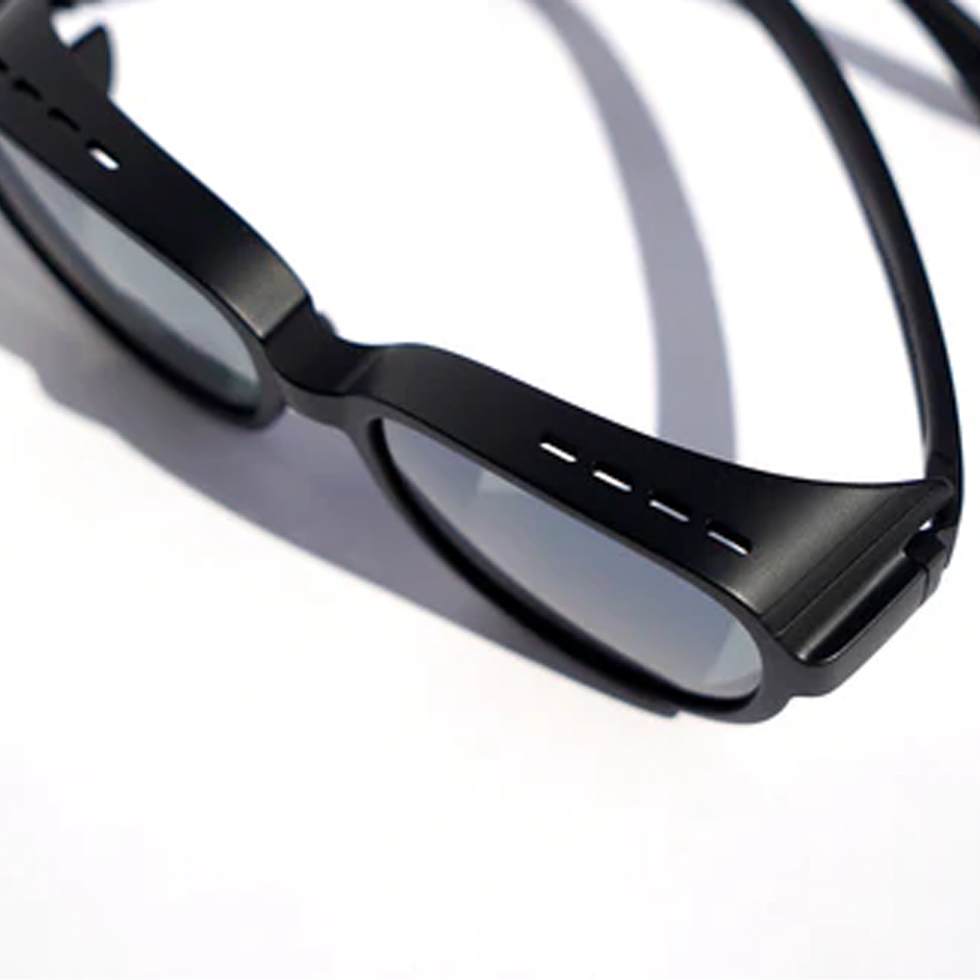 通常のサングラスでは防ぎきれないサイドからの日差しや風をカットするフレームシェイプ。反射光が特に強い森林限界を超えた高山や雪山、海辺、これらの環境では視界の確保だけではなく、更に紫外線から眼を守る室用があります。FLOATではフレームとサイドカバーの一体型を選択。一体型にすることでパーツの紛失や故障を防げるだけでなく、かけやすいシンプルなデザインを追求しました。