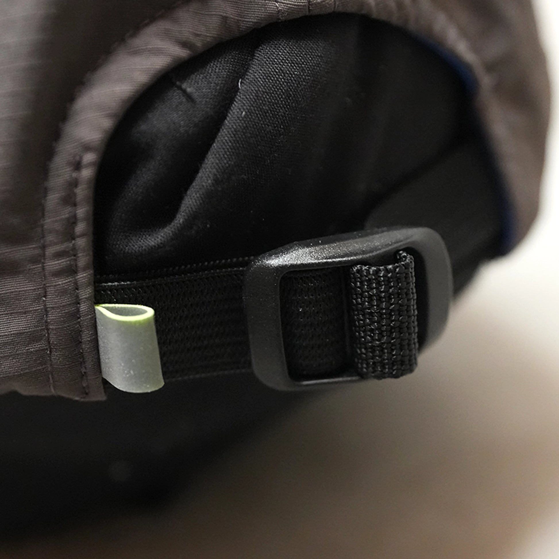 刺繍入りの6パネルキャップ。つばはやや短めの5.5㎝で軽やかな印象に。つば裏にはグリーンの配色を取り入れ、光の反射を和らげる効果も。自然なフィット感と快適な被り心地を両立したデザインです。
