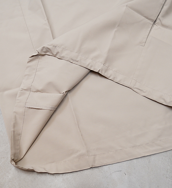 ミニマルなデザインを採用した新しいタイプの高機能Tシャツです。超軽量で耐久性に優れるC9 Ripsto™生地は耐風性、耐水性、透湿性を併せ持ち、天候が急変した際にサッと羽織ることができるようウインドブレーカーの基本性能を備えています。ランニング、カヤック、トレッキング、スキーなどあらゆるアウトドアアクティビティにおいて機能し、持ち運びのしやすいパッカブル仕様でいつでも携帯しておくことが可能です。ユニセックスモデルでリラックスフィットのデザインを採用しています。
