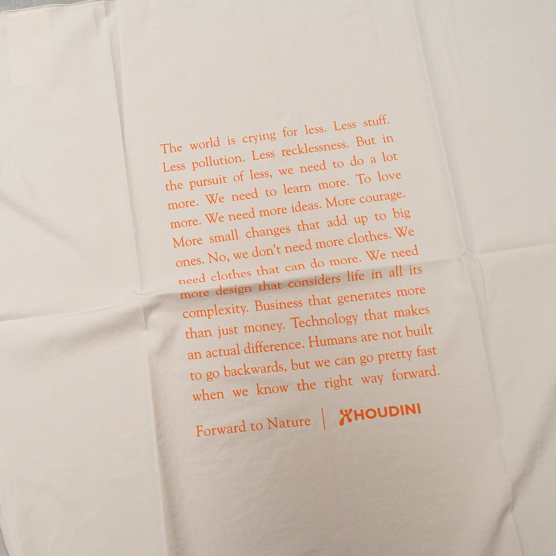 フーディニは『CORE COMFORT = 最高の着心地』をコンセプトとして1993年に設立されたスウェーデンのアウトドアブランドです。機能美、そしてミニマリズムを根幹とするデザイン哲学のもとプロダクトは開発チームとスポーツのスペシャリストであるHOUDINIフレンズによりテストが繰り返され、高い機能性に加え環境負荷の少ないサスティナブルなものづくりを続けています。