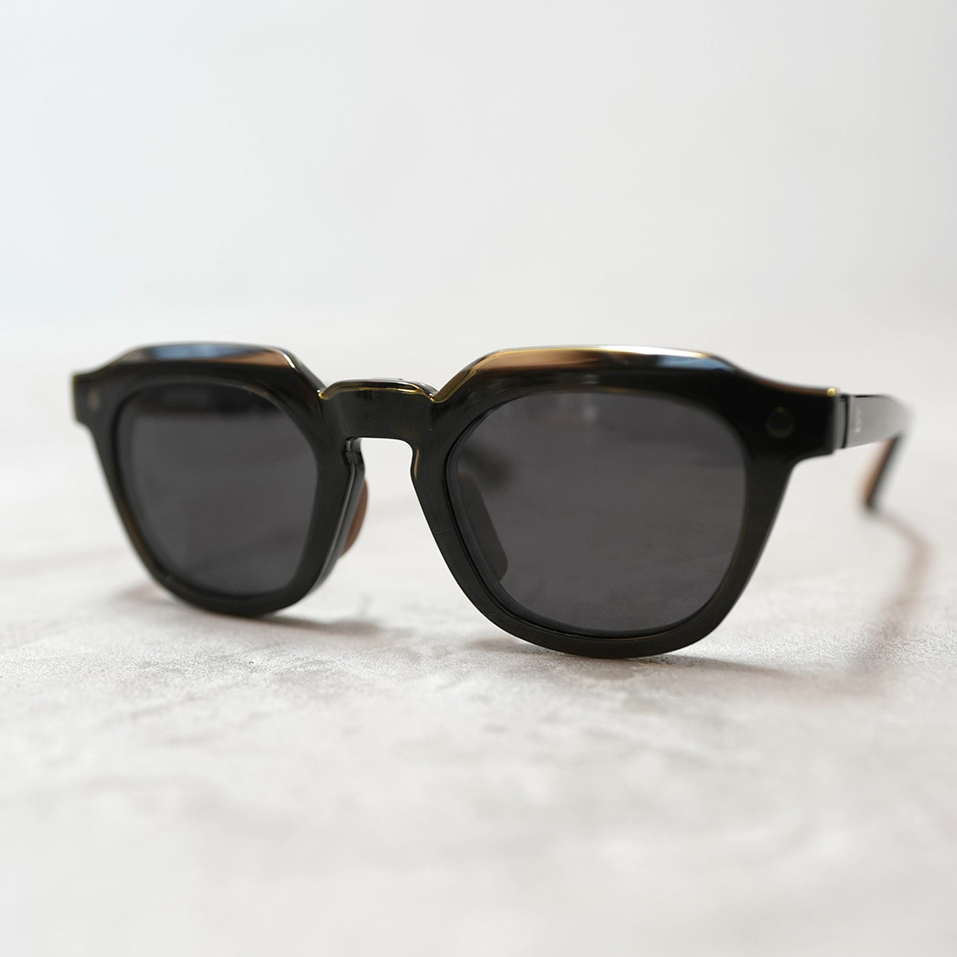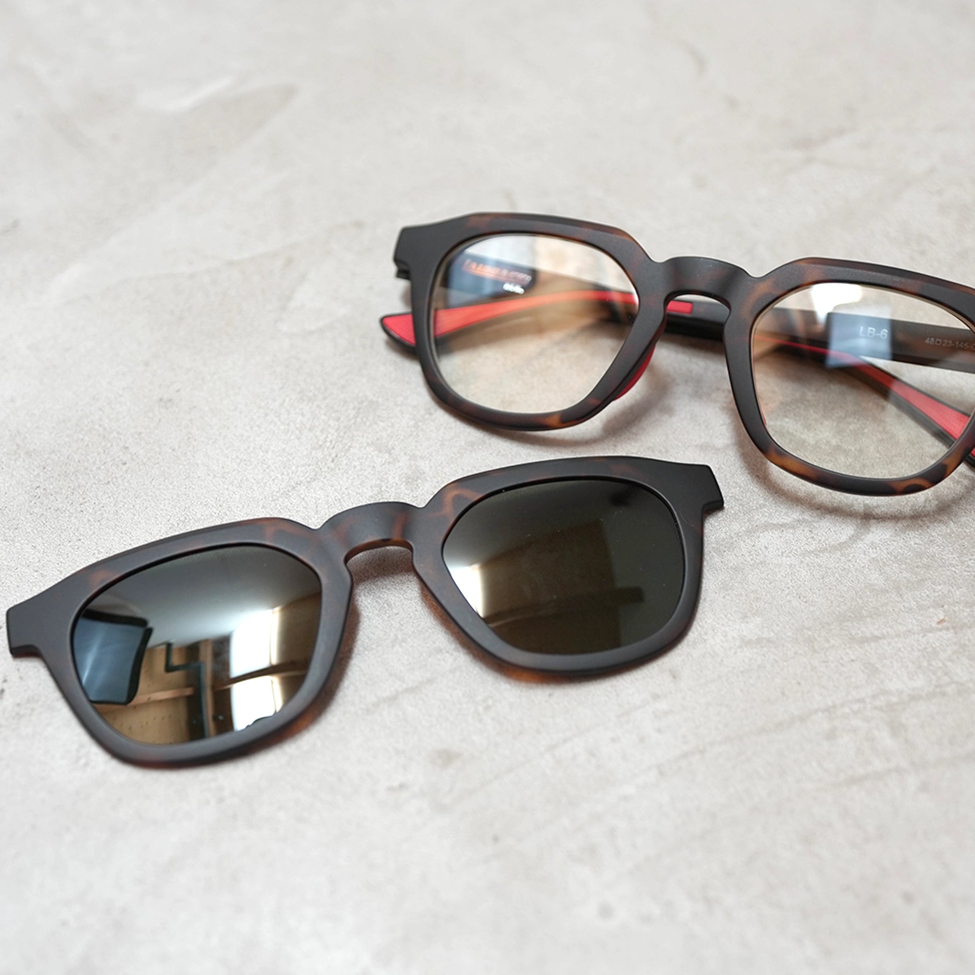 量産化まで試行錯誤を重ねたブランド初のマグネット式クリップオンサングラス。TRならではの軽さと装着した時に一見クリップオンにみえないよう一体感に拘った仕様に。さらに偏光レンズを装備しています。