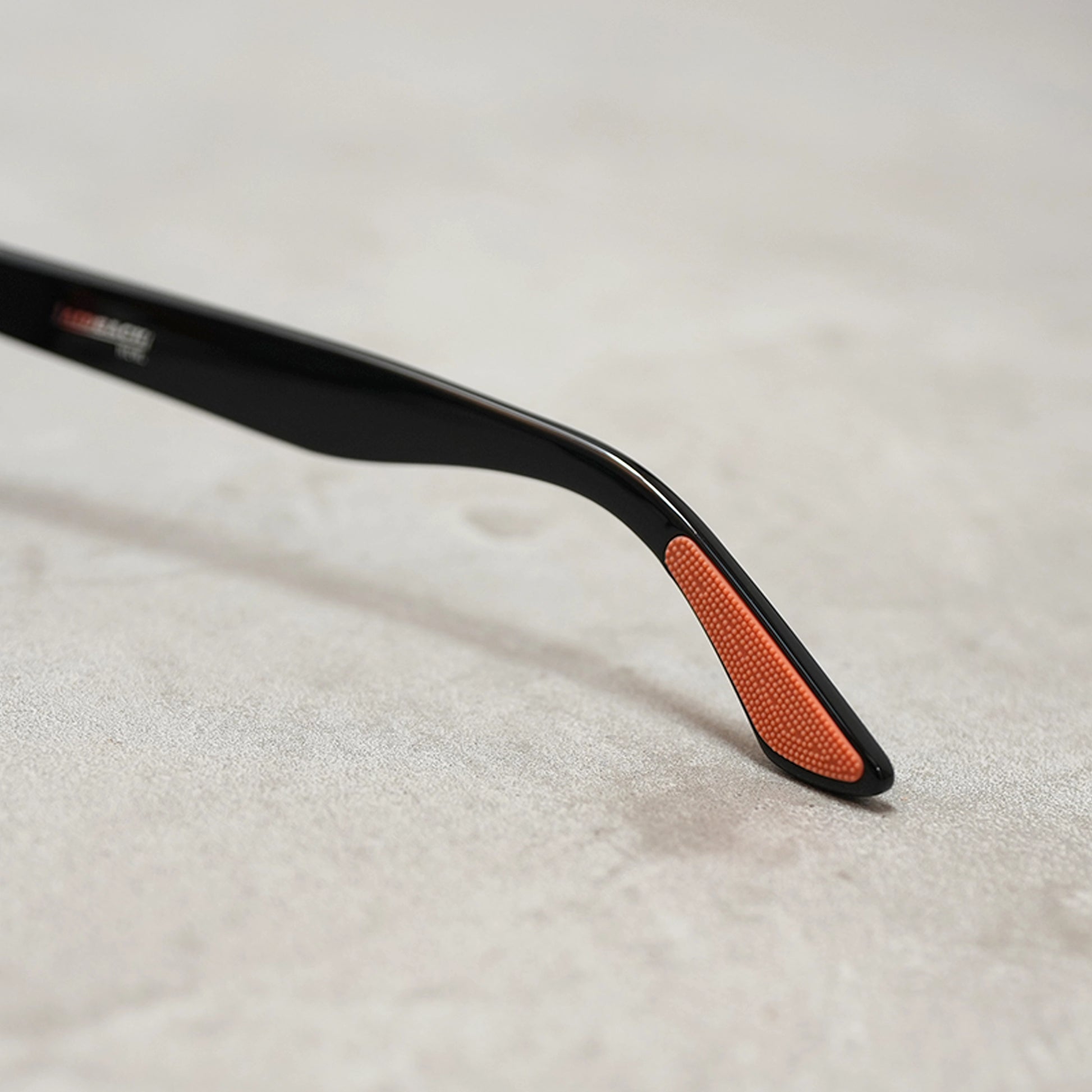街と自然をシームレスにつないだデザイン。軽さ、弾力性、耐久性に富んだ"TR-90"を使用。TPEと呼ばれる滑り止めの効果がある取り換え可能なノーズパットとテンプル内側のエンド部分にも採用し芯をプラスチックに内包する"芯張り"と呼ばれる製法技術で優れた掛け心地を実現。紫外線を99%カット、CR-39素材の裏側に反射防止効果のあるARコーティングを施したレンズを使用。