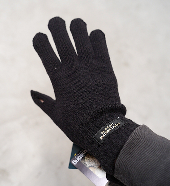親指と人差し指先甲側の縦のスリットから指を出すことで円滑にタッチスクリーンの操作を行うことができます。タッチスクリーンには直接指で触れることができるので微妙な指先での操作が可能。スリットの位置をやや指の中心からずらしているので外した指先が操作の邪魔になりません。スリットを甲側に設けたことで物をつかんだ時の指先の違和感や冷えがなく、中細の糸で編み上げ、裏起毛処理を施してあるので肌触りが良く温かいです。