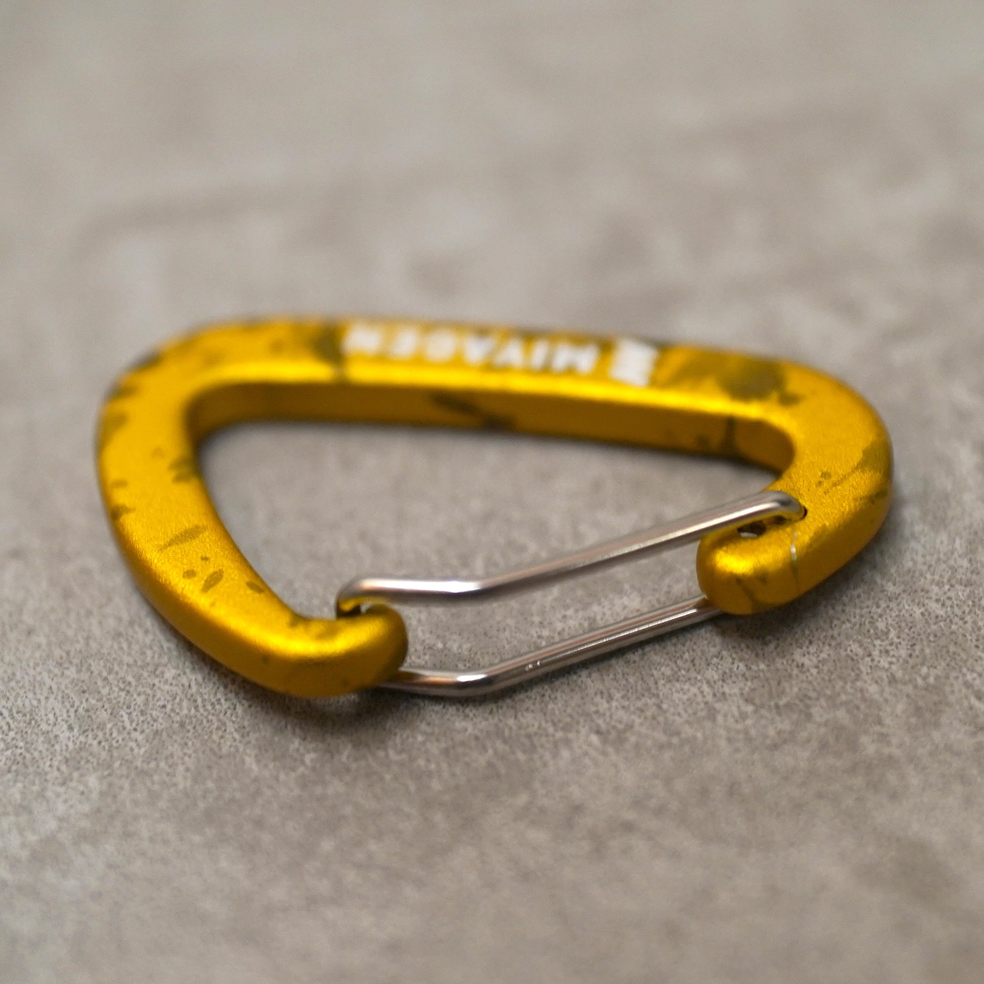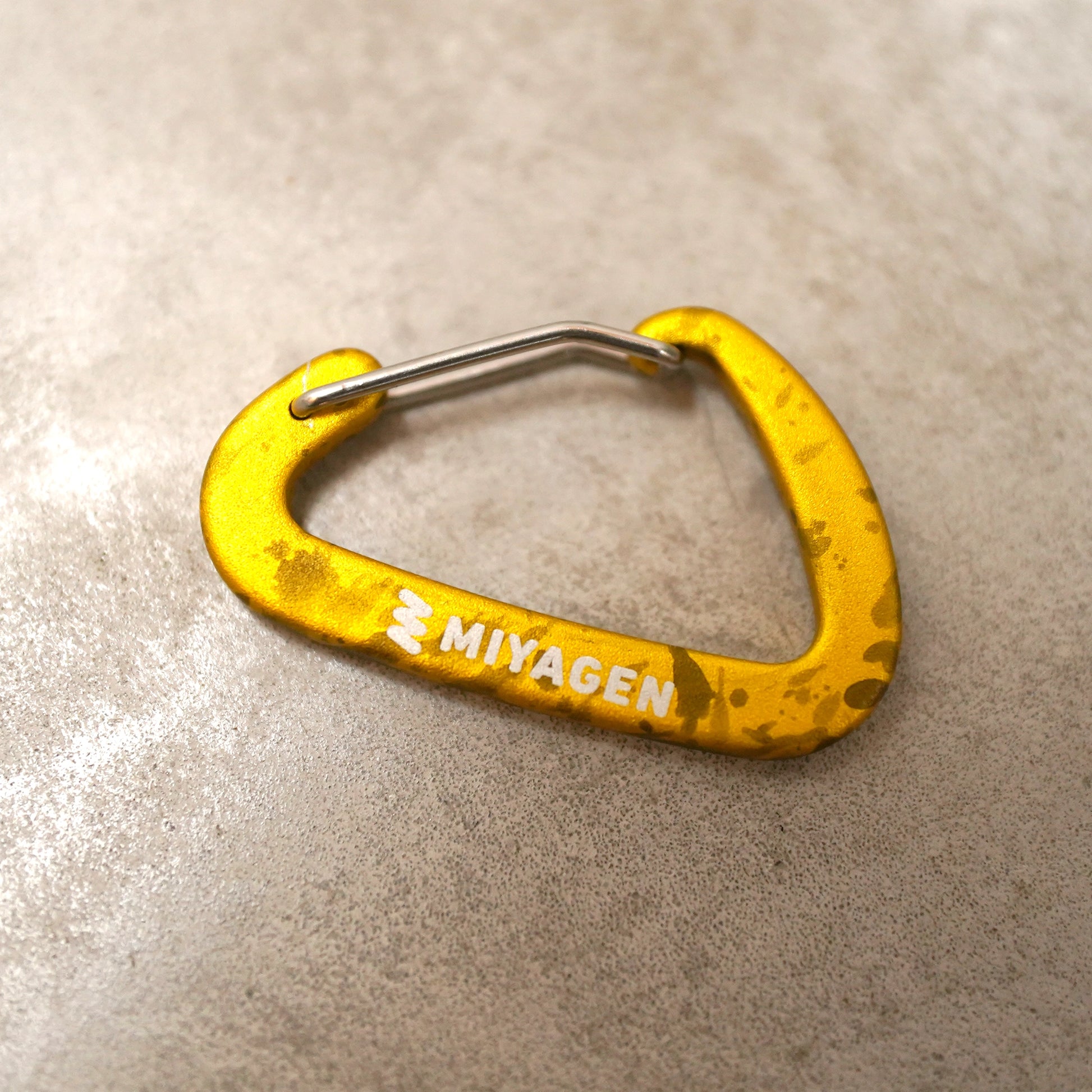 今回のカラビナは一般的な小型モデルですが、アルマイト処理においては、通常はコストや製品安定性の観点から避けられがちな「スプラッシュアルマイト」をあえてしております。
