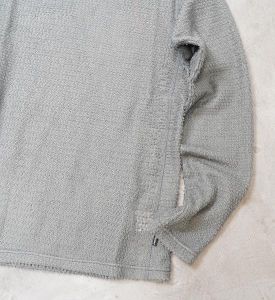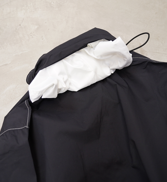 POLARTEC® が開発した究極のインサレーション「Alpha」ををさらに進化させた「Alpha Direct」。保温性と速乾性はそのままに、より通気性を高め軽量化。そのAlpha DirectのロングTシャツにPERTEX® EQUILIBRIUMのウィンドシェルを組み合わせました。日本製のオリジナルボディは、ロング T シャツは脱ぎ着しやすい浅 V ネックで、アクティビティに適したシルエット。脇のガゼットにより立体的な構造で、動きやすいように肩幅に余裕を持たせ、ストレスが少ないナチュラルな着心地です。背部に収納ポケットを備えます。組み合わせるウィンドシェルは、フードを収納式にして首周りとスッキリさせ、シンプルな構造にすることで軽量化。全開になるフロントファスナーは上下に開く逆開タイプ。アクティビティ 時には開閉することで蒸れや体温を調整可能。内容物が落下しにくいファスナー付きの胸元のポケットは、スマートフォンなどを収納可能。本体を収納することでパッカブルになります。Tシャツの素材はAlpha Direct。アクティビティ時に保温性をキープしながら、高い通気性で身体の汗や蒸れを放出する超軽量インサレーション。より発熱や発汗量の多いトレイルラン、ランニングに最適な素材として世界的に評価が高いです。ウィンドシェルのPERTEX® EQUILIBRIUM は、防風性と撥水性を持つ軽量な高機能素材。表面と裏面の二重織り構造により、汗や湿度を効果的に外側に排出し、ウェア内環境を快適にキープします。高密度で織られた表面で防風、撥水し、極細糸で織られた肌面は凹凸形状で肌と生地の間に空間をつくり、べたつきや纏わりつきを防ぎます。優れた通気性と速乾性を保つ Alpha Direct だが、行動することで発する熱で保温することが前提。動いていない時は防風するなど保温する必要があります。PERTEX® EQUILIBRIUM の軽量ウィンドシェルを組み合わせることで、各々の機能を補完し、より完全なプロダクトとなりなす。