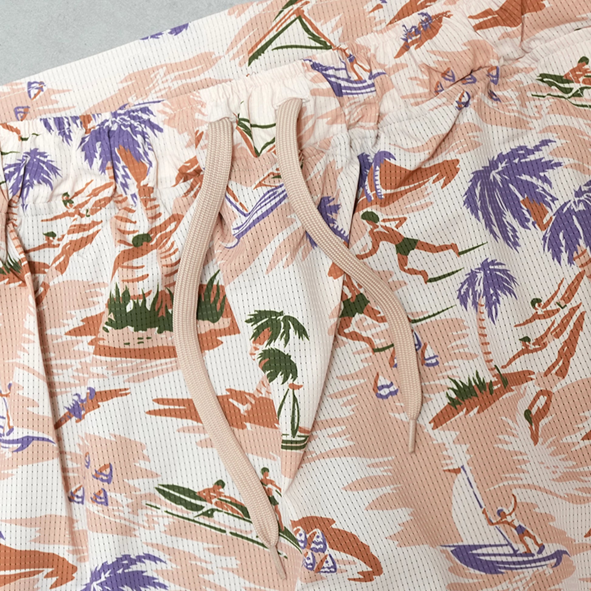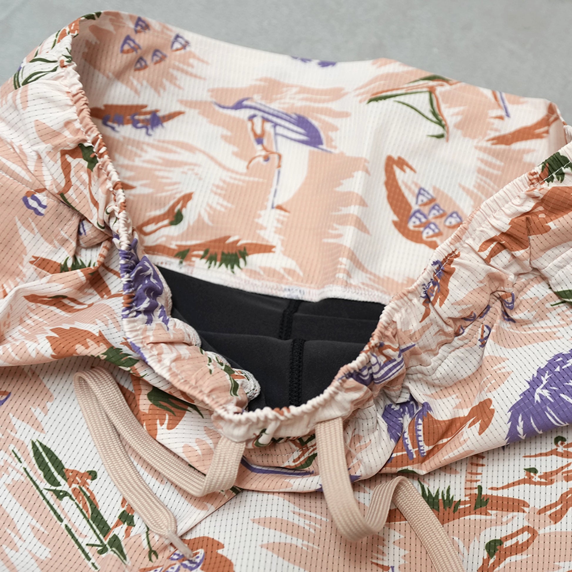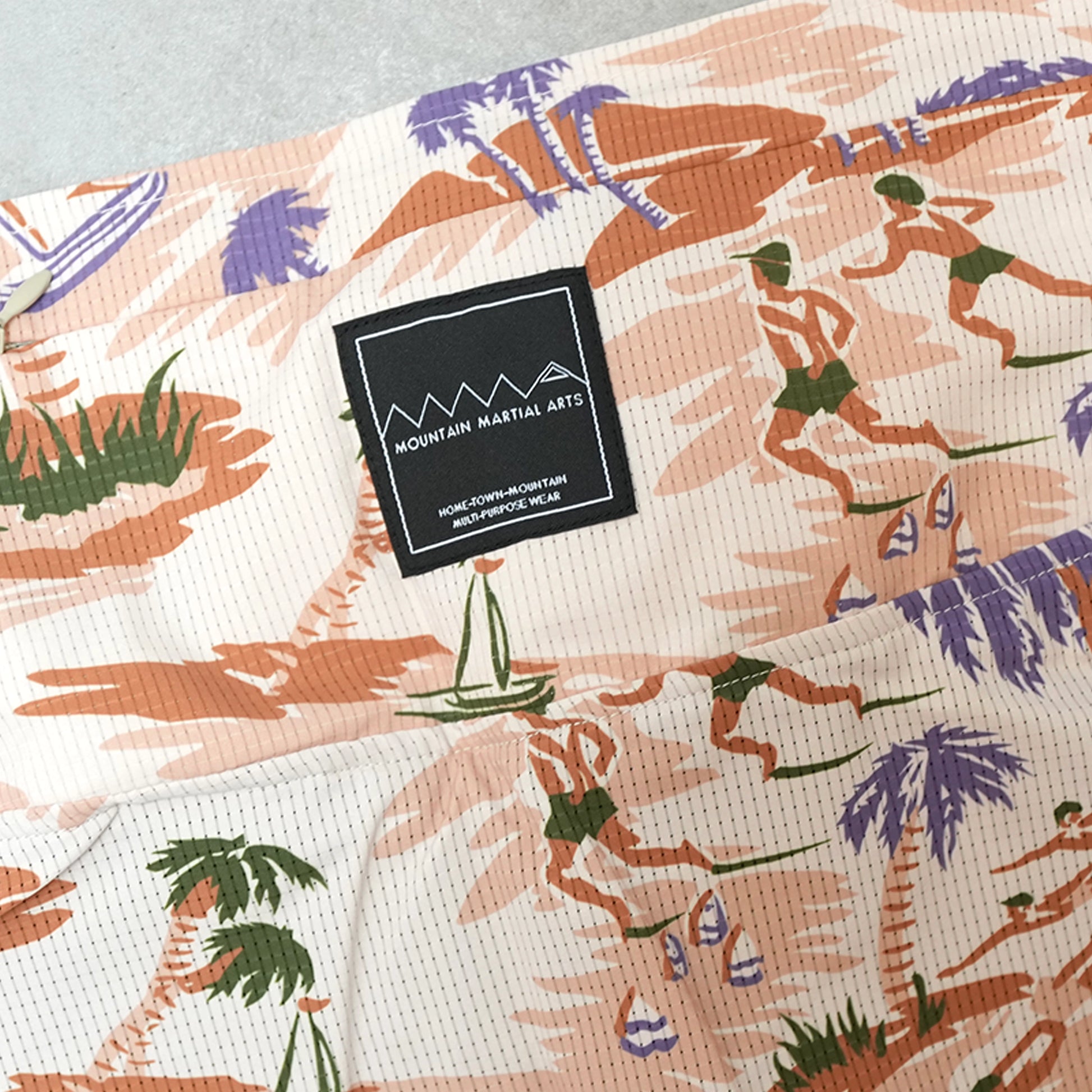 深いサイドスリットで走りやすさを追求したランニングスカートです。日本製のオリジナルボディは、ロード&トレイルラン時の足さばきを妨げないサイドの深いスリットが特徴。ファスナー開閉式の背部のポケットは、補給や鍵、スマートフォンなどを収納できます。ウエストはゴム+紐で調整可能。2トーンカラーのライナーは4ウェイストレッチで消臭効果もある吸水速乾素材を使用。肌触りが柔らかく、高い伸縮性と立体的な構造で快適な着用感を実現。サイド部分にスマートフォンを収納できるポケットを装備。本体素材は、通風孔があり通気性の高い東レの撥水素材「Dot Air®」を使用。吸水速乾・ストレッチ機能に加えて薄く軽量で、長時間着用していてもストレスを感じません。機能を損なわない昇華転写でヴィンテージアロハをサンプリングしたオリジナル柄を全面プリント。ファッションの価値観にアクティビティの機能性をプラス。アクティビティでのモチベーションを上げ、タウンユースでは機能を実感します。シームレスに活躍するプロダクト。