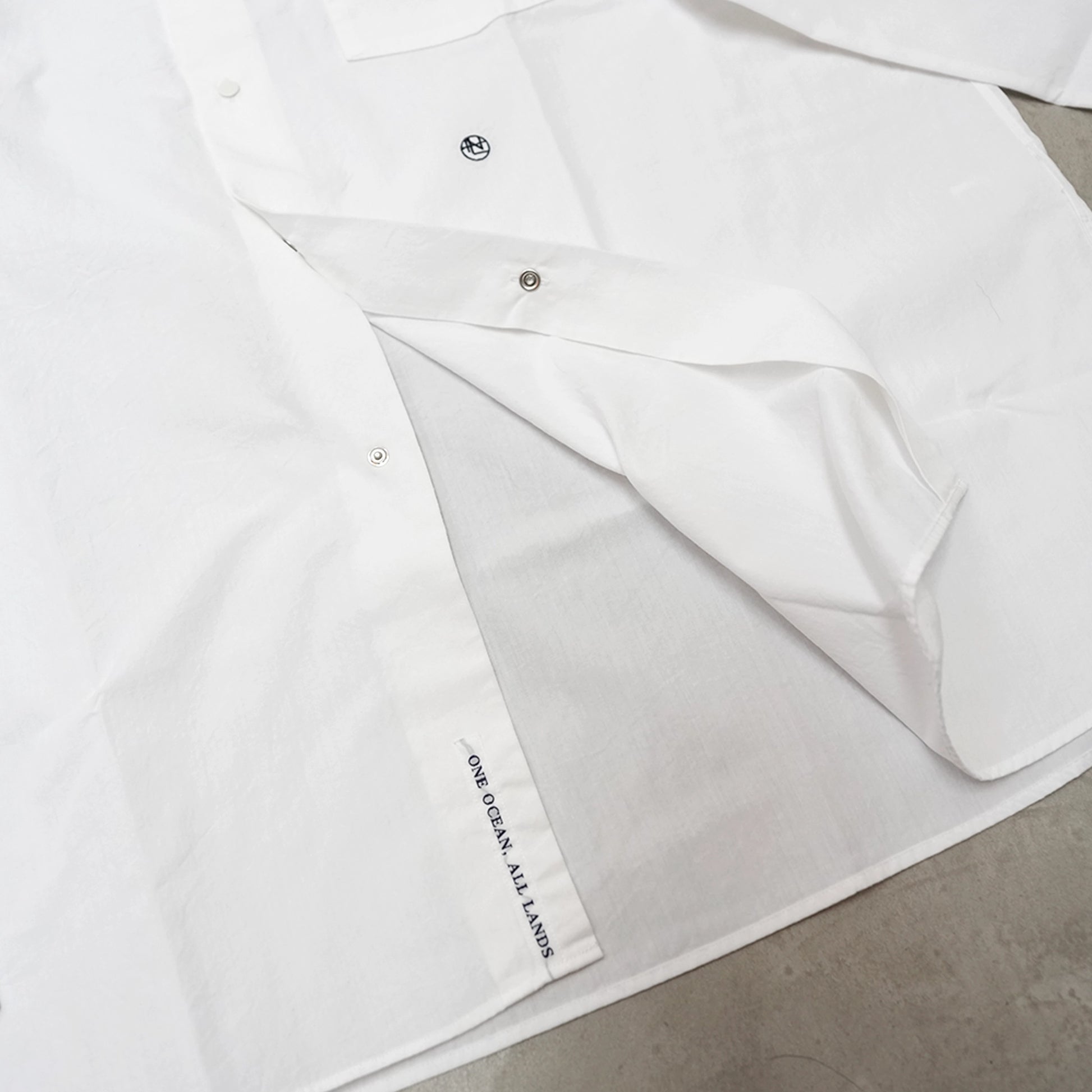 ポリエステルの外側をオーガニックコットンで覆った二層構造のカバーリングコアヤーンを使用し、高密度に織り上げたブロードクロスを製作。コットンの肌触りに、軽量且つ耐久性があり乾きやすいという機能性をプラスしたnanamicaオリジナルのハイブリッド素材です。身頃にボリュームがあるリラックスフィット。