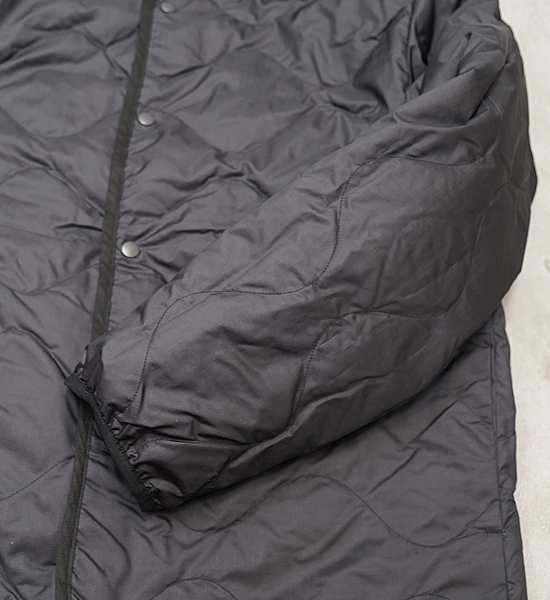 ミリタリーライナーをデザインベースにしたリバーシブル仕様のダウンカーディガン。表側は、ポリエステル65%,コットン35%をミックスした糸で高密度に織り上げた軽量のウェザークロスを使用。裏側は、ポリエステルリップストップを使用。中わたは、体が発する遠赤外線を輻射して保温効果を高める高機能な光電子®ダウンを使用。フロントのアジャストボタンでフォルムを絞ることも可能です。