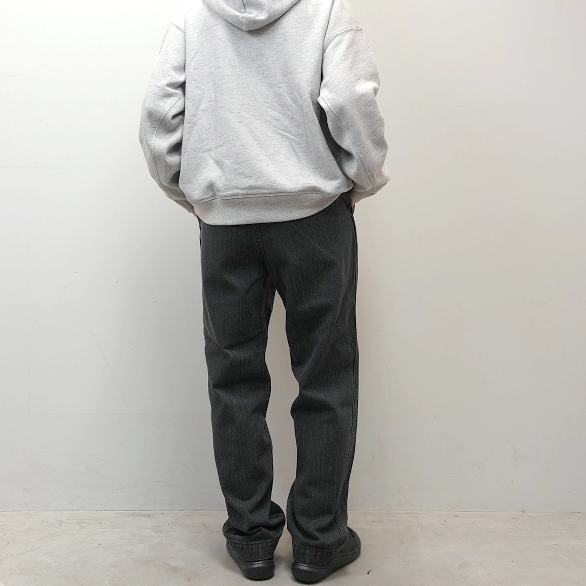 ワイドテーパードカットのデニムパンツ。リサイクルポリエステルの外側をコットンで覆った太番手のムラ糸を独自で開発し、ロープ染色にて染色。軽量且つ耐久性があり乾きやすいという機能性がありながら、自然な経年変化を楽しめるnanamicaオリジナルのハイブリッドデニムです。