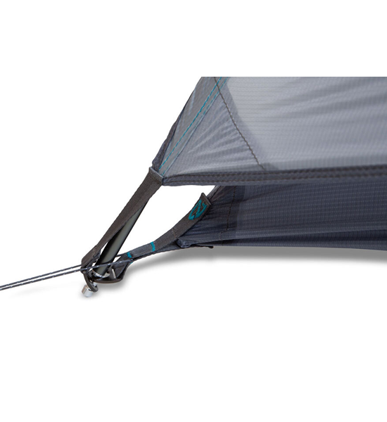 トライアングル形状のガイアウトポイントとコーナーストラットにより足先部分のサイドウォールが立ち上がり、シュラフがテントウォールに触れるのを防ぎます。