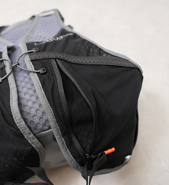 ストレッチメッシュ製のハーネスとポケットが中身を身体に密着させ、ランニング中のパックの揺れを軽減します。フロントには7つの大きなストレッチポケットを装備。行動中に必要なものはすべてここに収納できます。
