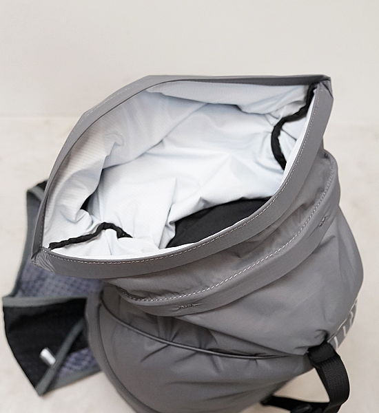 MtnFire 15は、背面に15リットルの大容量ロールトップポケットを装備。2日間の山岳マラソンにも対応できます。