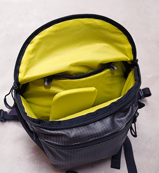 高強度ナイロン糸を格子状にした強靭なファブリックに、耐摩耗性と防水性に優れたカーボネイトコーティングを施しました。メインアクセスは従来モデルのフラップ式から止水ファスナーに変更し、機密性を高めることで、雨や埃から大事な機材を守ります。