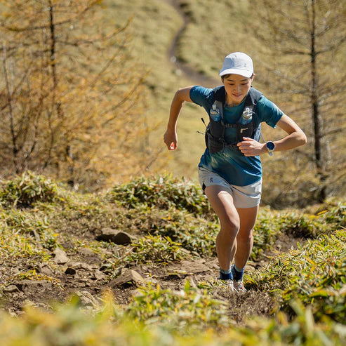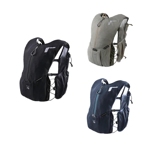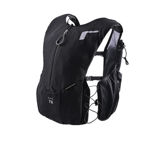 ミドルレースに最適な定番レーシングモデル。レースモデルの決定版・7Rが大幅にアップデート。さらに背負いやすく、使いやすくなりました。熱のこもりにくい素材によって快適性も向上し、長時間の中距離レースでもストレスなく使えます。本体生地に1wayストレッチメッシュを採用。縦方向の伸びを抑えるため荷物の揺れが軽減し、ストレスフリーの走りを実現。また、ストレッチ性が高いため荷物の量に応じてパックの容量が可変します。身体に触れるハーネス部分に、通気性の高いモノメッシュを採用。熱がこもりにくく、発汗量の多いレースや多湿な環境でも快適な走りをサポートします。