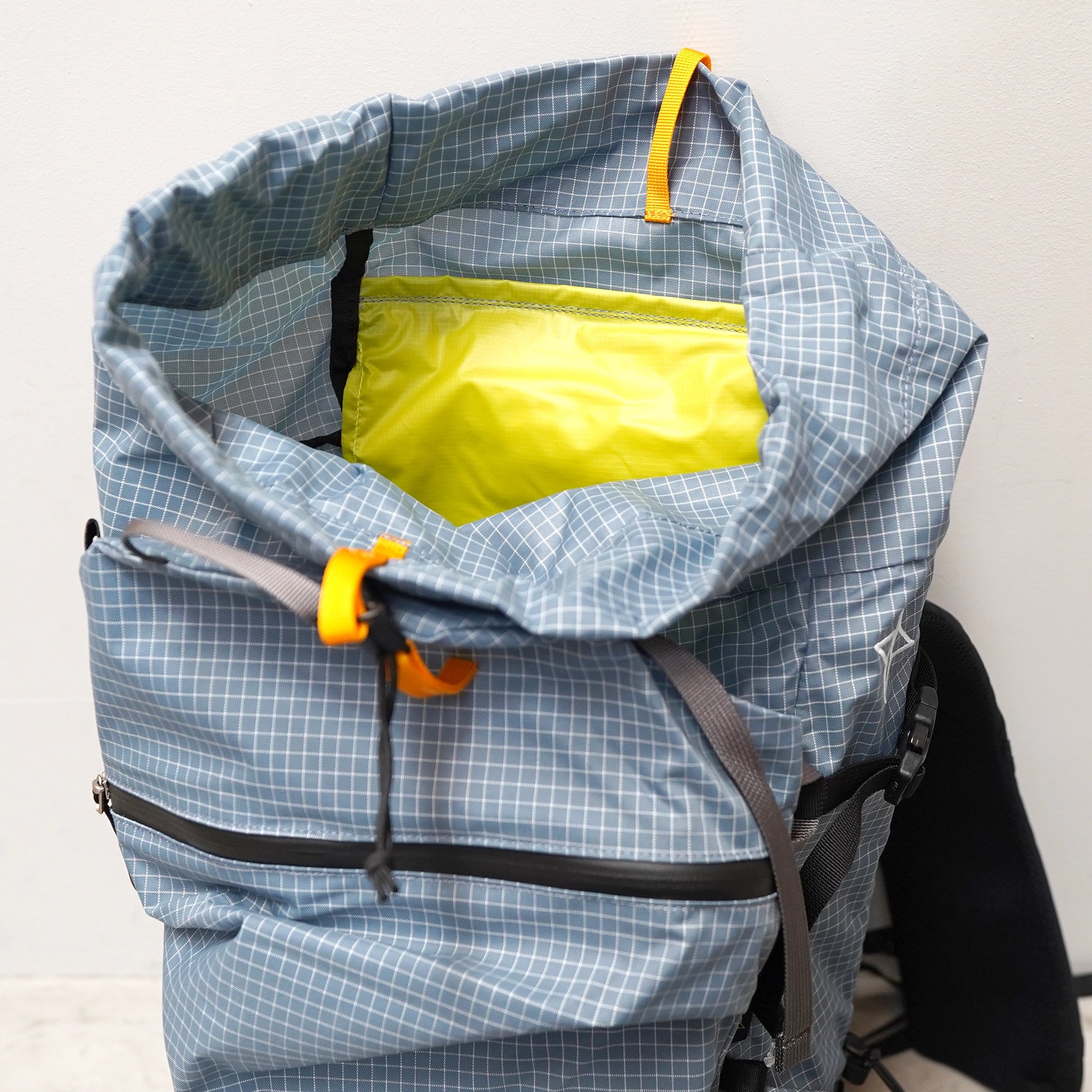 アルパインザックのような細身のシルエットを基本にしながら、肩甲骨の周辺にボリュームを持たせることで荷重バランスを最適化しています。RUSHとBUDDYゆずりの高重心設計です。