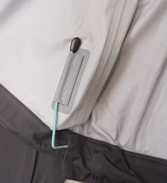 ラミネート加工を施したキャップスタイルのピークを備えた、ぴったりとフィットするロールアウェイ式フードは、視界を妨げることなく天候を保護するようデザインされています。フィット感を確保するクラウンアジャスターと、傾斜が強くなったときに空気の流れを確保するリアベント付き。上腕部の背面には体温調節に役立つベンチレーションホールを備え、防水ストームフラップ付きの軽量フルレングスジッパーは首元までジッパーで開閉でき、悪天候をシャットアウトします。