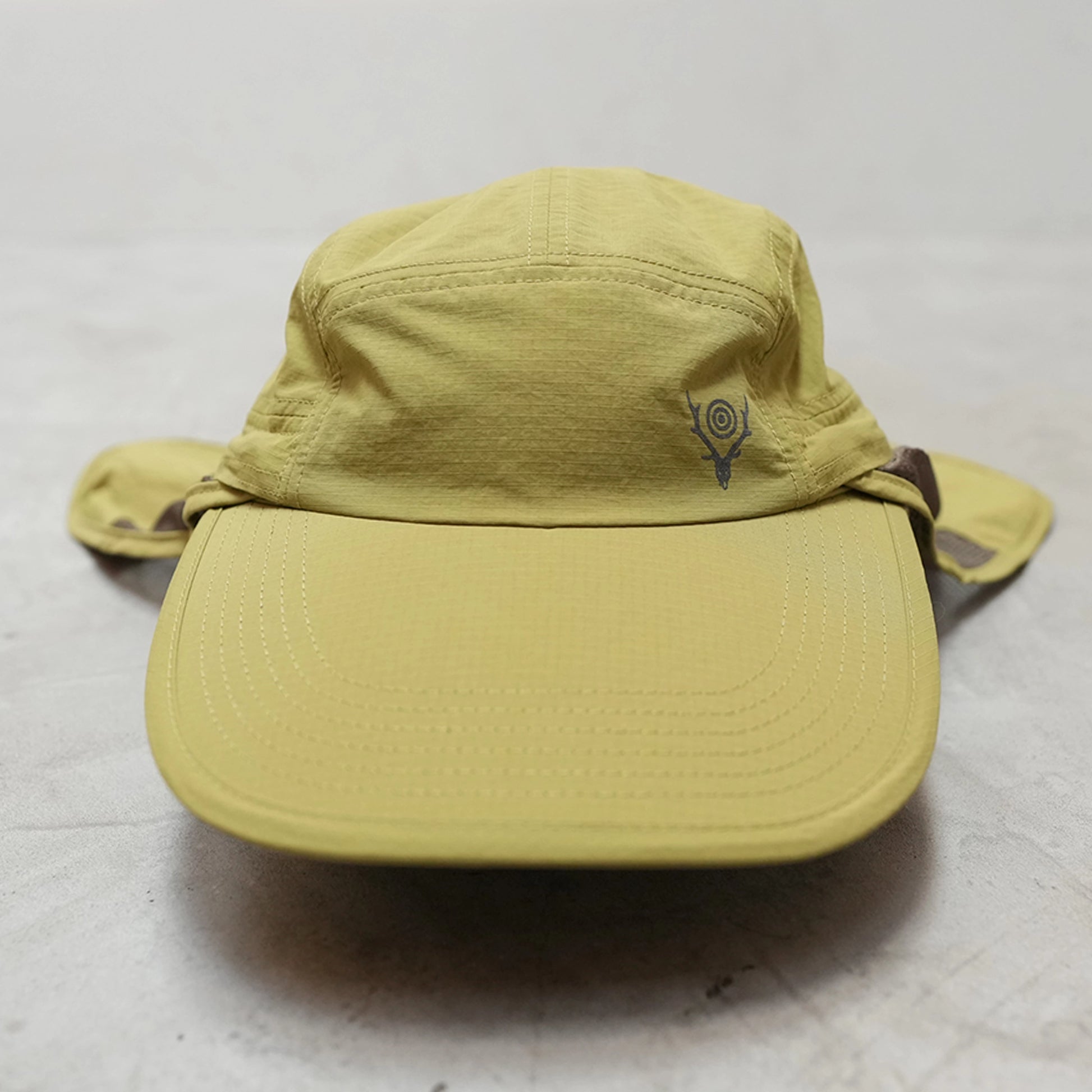 好評だった日除け付きキャップが今季も登場です。今作ではボディに耐久性の高いナイロンリップストップ素材を採用。加えて、サンシェード部分の一部をメッシュ仕様にすることで通気性が向上し、より快適な被り心地を実現しています。撥水性・速乾性にも優れ、アクティブな夏のシーンで活躍します。サンシェードはスナップボタンで着脱可能。取り外せば、スタイリッシュなジェットキャップとしても着用いただけます。