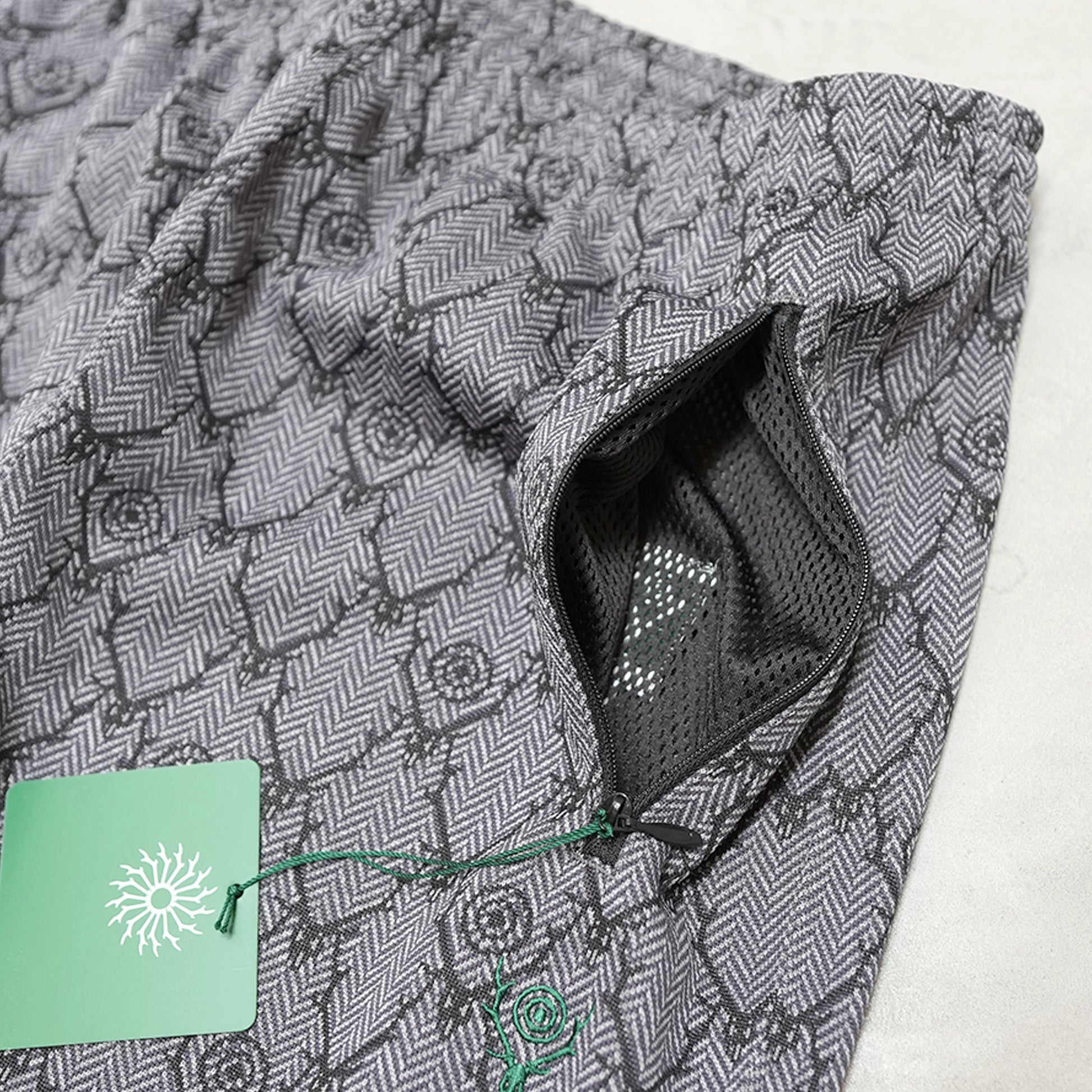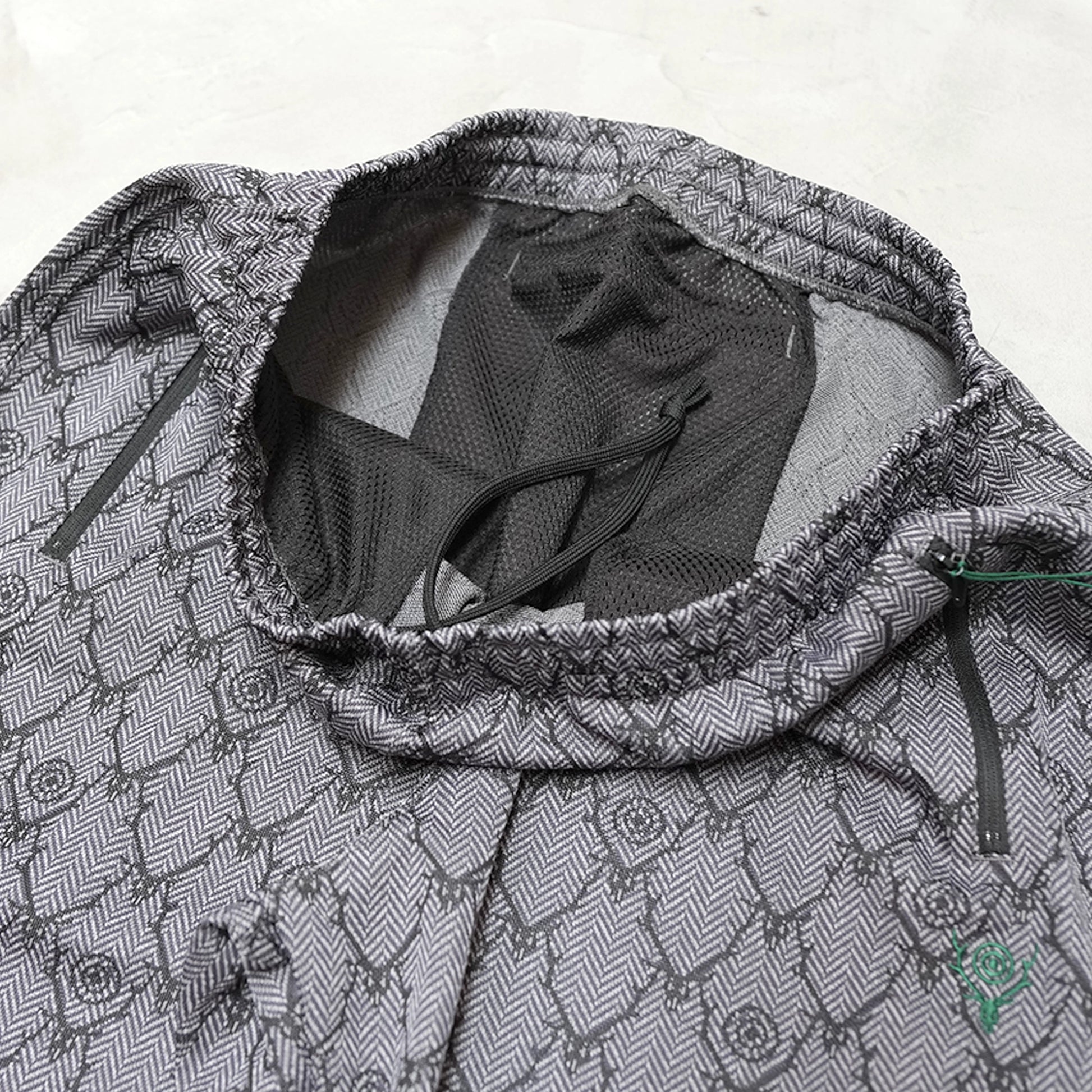 〈SOUTH2 WEST8〉のアイコンでもあるスカル&ターゲットがジャカード織の総柄で表現された、インパクト十分のトレーナーパンツ。通気性や伸縮性に富んだポリエステルジャージーを使用しており、快適な履き心地の良さも魅力です。ややゆとりのあるストレートシルエットで、バックウエストに備えたジップポケットも特徴的なデザインです。タウンユースから本格アウトドアまで幅広く活躍するアイテム。同素材でトレーナージャケットやVネックのプルオーバーシャツも展開され、セットアップでも着用が可能です。