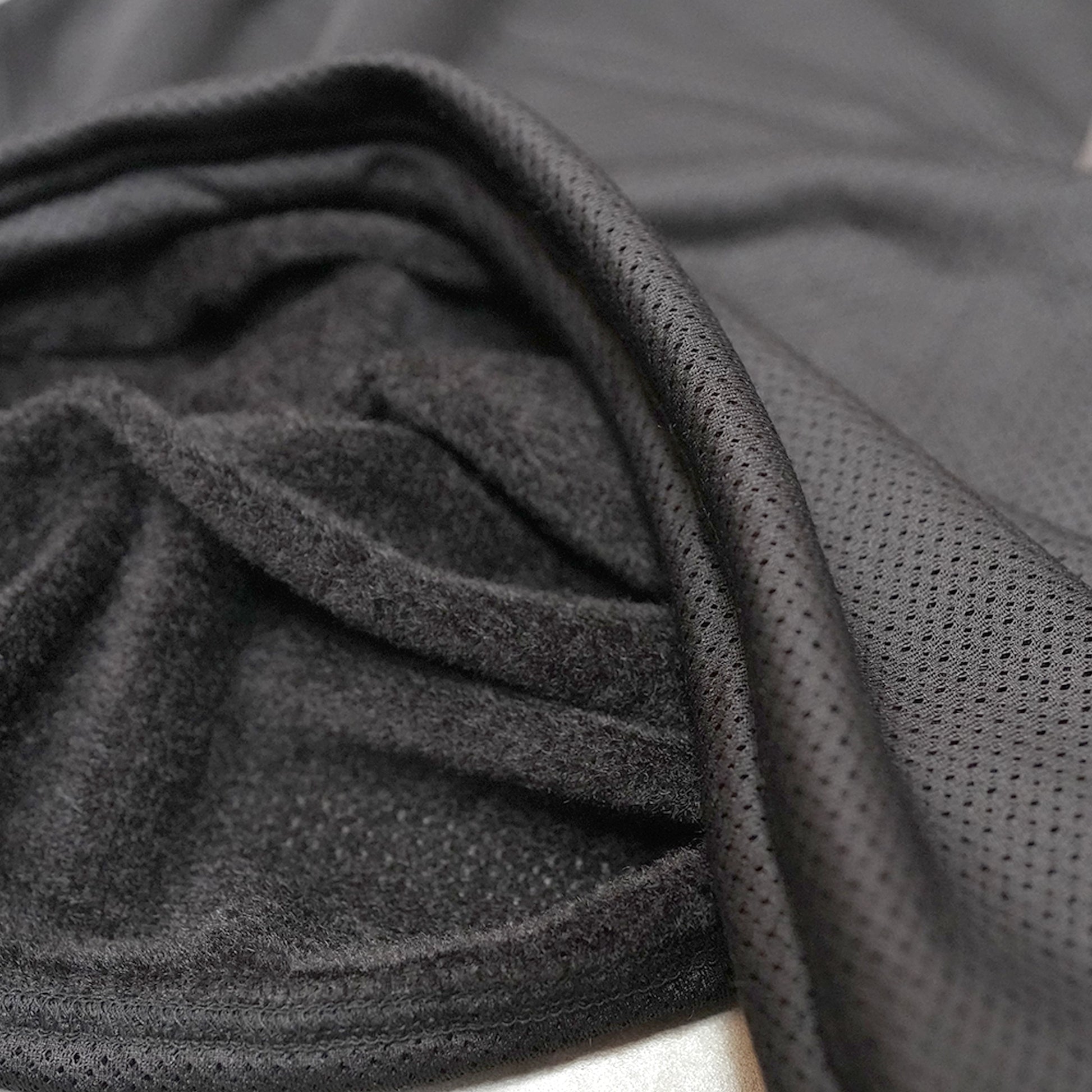 表のメッシュ素材に保温材になる異形断面中空ポリエステル起毛繊維を一体化させたメッシュフリース素材のOcta®CPCP®。その軽さと暖かさ、熱抜けの良さが特徴のポリエステル生地。 通常は裏地として使うがSTATICでは単体フリースとして採用しました。