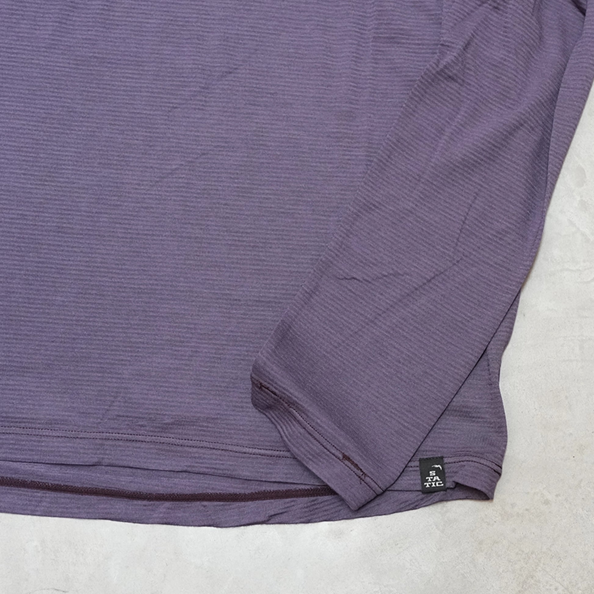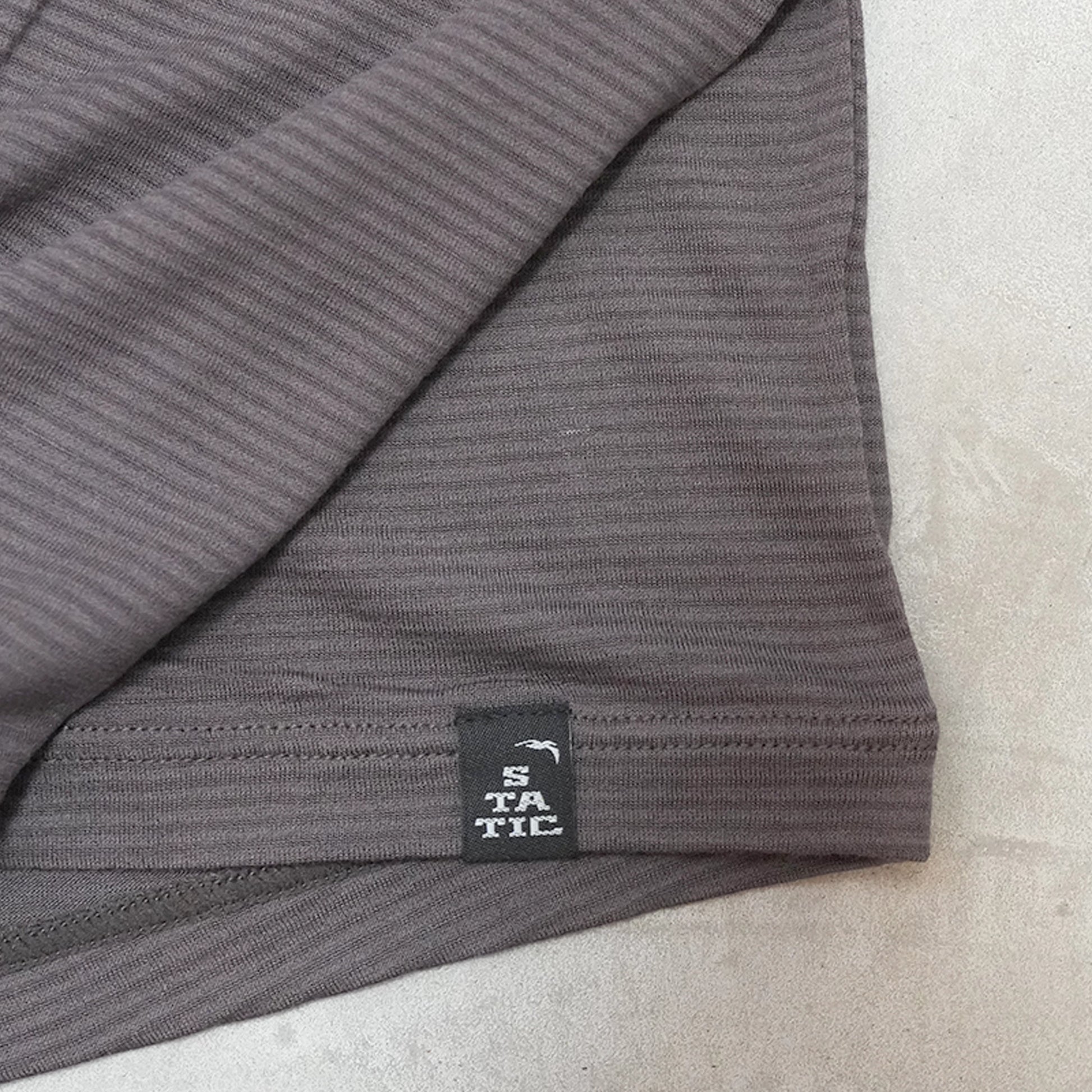 STATICでは肌に触れるレイヤーには石油由来の繊維を出来るだけ使わずに天然素材を提案しています。 メリノウールは冬は暖かく、夏は熱を放出してくれます。 アウトドア用途としては保温性だけでなく、調湿性、防臭性、肌触りの良さなど高機能な繊維と言えます。メリノウールを使い、発汗量の多い春夏でも快適に使える生地を探していました。 そしてたどり着いた答えがメリノウールとリサイクルポリエステル糸のALL ELEVATION混紡生地です。