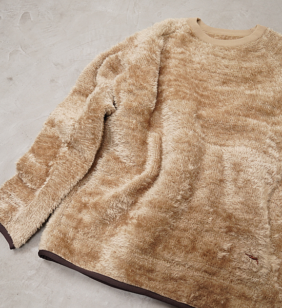 Adriftシリーズでお馴染みのOcta®を使った新素材が登場します。芯糸にOcta®を巻き付けたWrest Knit。ニットなので、素材ロスが少なく非常にサステナブルな製法と言えます。また、ポリエステル100%なのでご自宅で簡単にメンテナンスすることが出来、毛抜けが少ないのも特徴。普段使いやキャンプ、軽いハイキングにぴったりな新感覚フリースです。