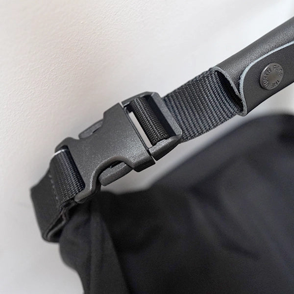 リサイクルポリエステルで織ったオリジナルのライトオンスキャンバスを使用したトートバッグ。環境に配慮したフッ素化合物を使用しないPFCフリーのはっ水加工で機能性をプラス。裏地にリサイクルナイロンオックスを使用。テープの長さを調節し、手持ちや肩掛けで使用できる2Way仕様です。