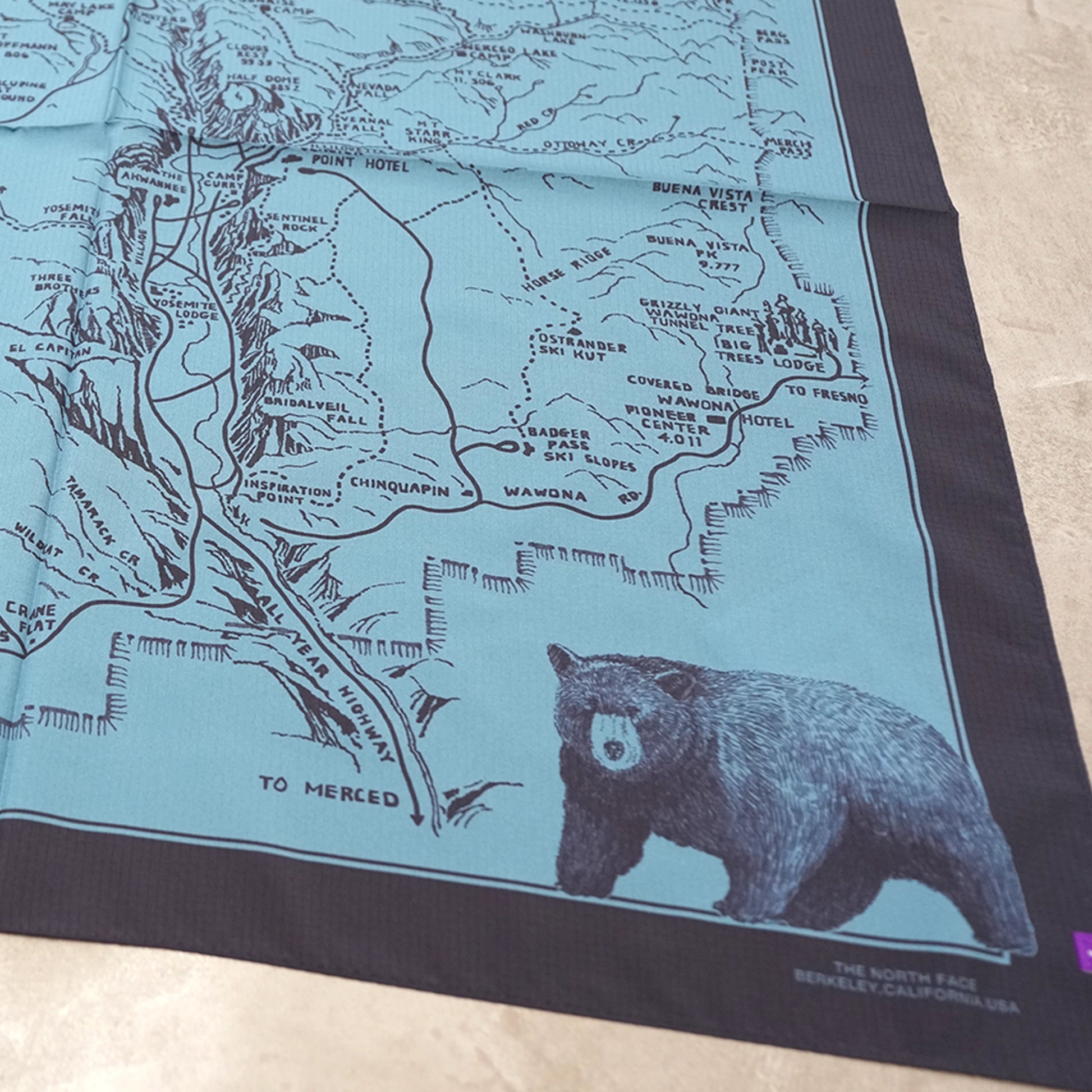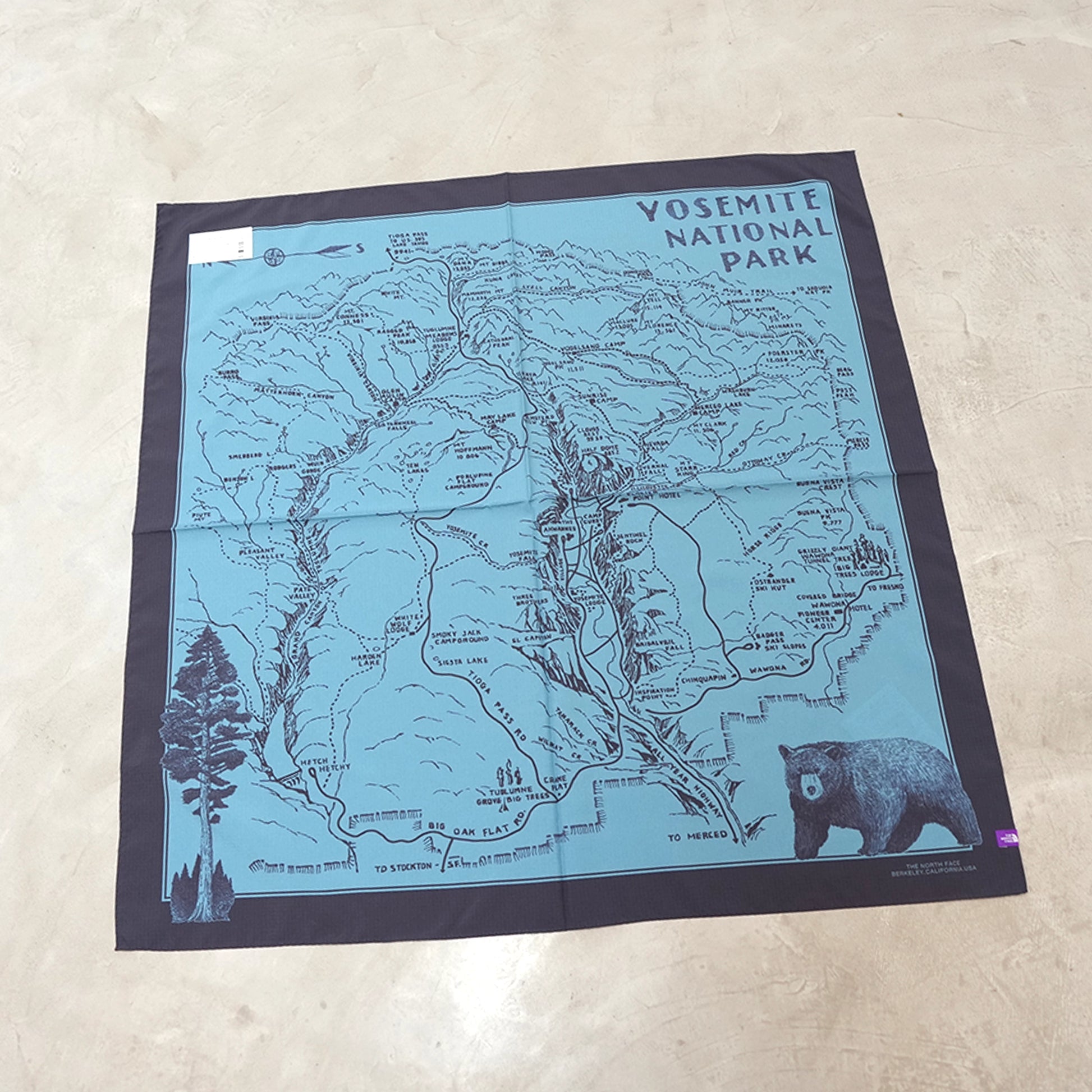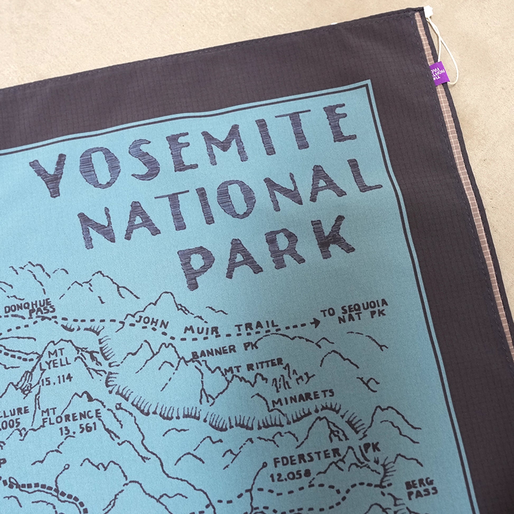 ヨセミテ国立公園のガイドマップをイメージしたアートワークをプリント。バッグの持ち手に巻いたり、腰や頭に巻いてアクセントをつけるのがおすすめです。