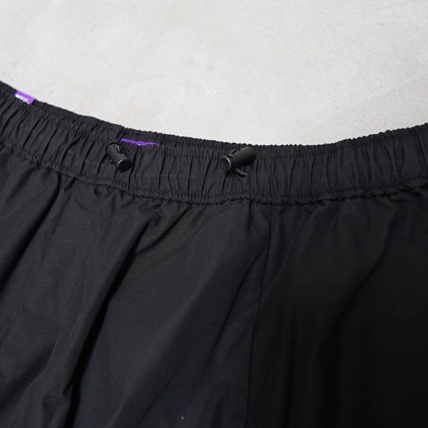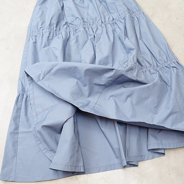 ブランドの定番素材、ミッドウェイト65/35ベイヘッドクロスを使用したティアードスカート。糸はオーガニックコットンとリサイクルポリエステルを採用し、はっ水加工を施すことで機能性をプラス。ウエストはサイズの微調整が可能なゴムコードとストッパーを装備し、ゴムシャーリング仕様となっています。右腰にシーム利用のモバイルポケット。