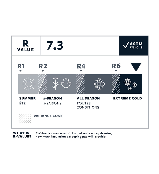 ・このクラスで最も暖かいエアパッド:トライアンギュラーコアマトリックス構造とサーマキャプチャーテクノロジーにより、重量とかさを最小限に抑えながら、R値7.3を実現しました。