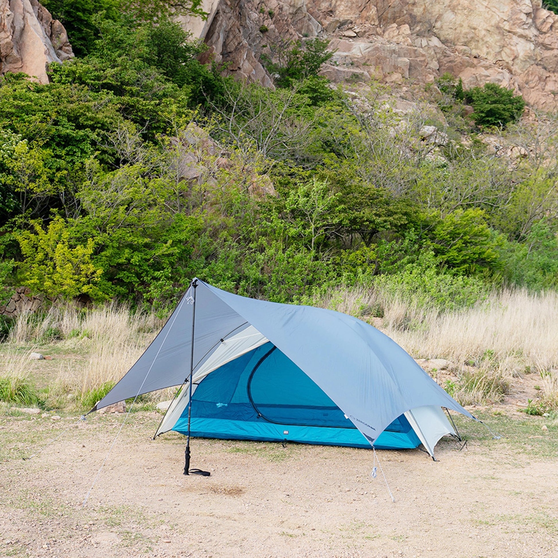 ソロ利用では雨をしっかり避けながら快適に寝られる十分な居住空間を確保。テーブルやクッカーまですっぽり覆うオープンスタイル、雨よけやプライバシー確保がしやすい垂直型など。さらにタープ全体を低く“ベタ付け”で設営すれば、複数人が余裕で身を寄せられる緊急シェルターとしても機能します。高い耐候性も加わり、 バックパッカーのギアリストに、さらなる軽快さと遊び心をプラスします。
